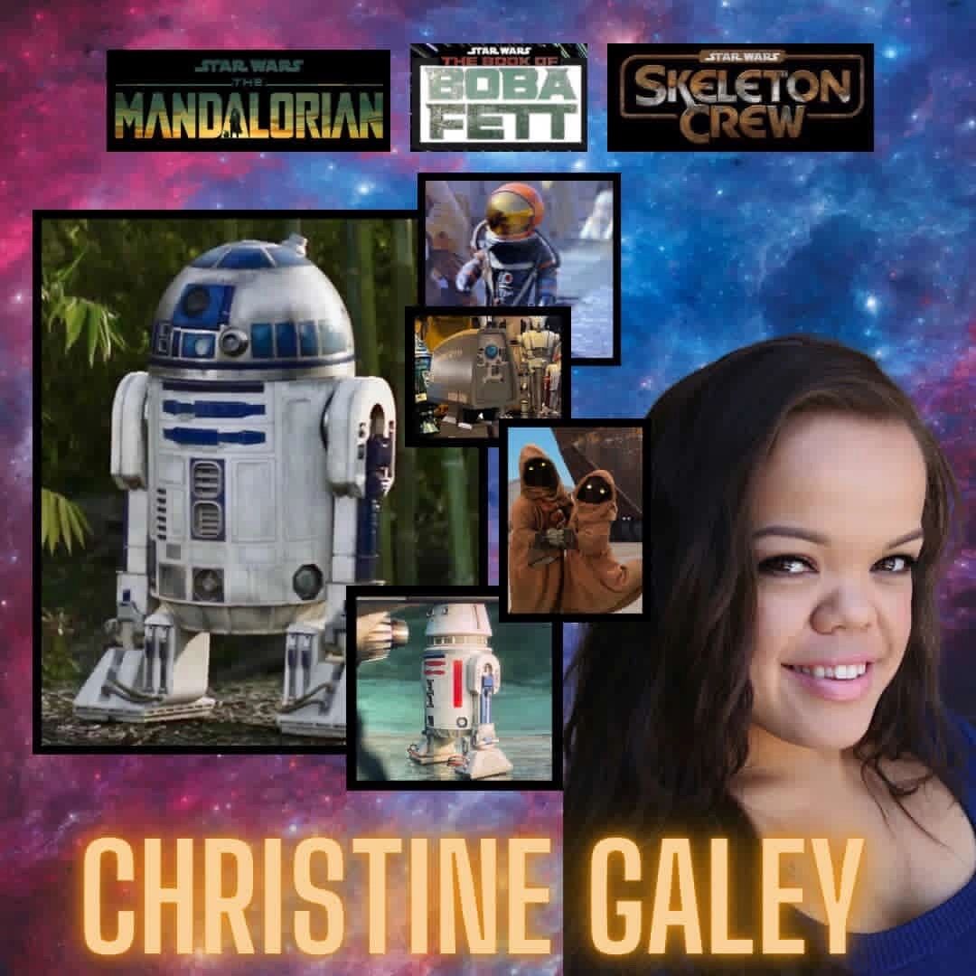 Christine Galey was casted in a series on Disney+ Star Wars The Mandalorian Season 1 as an Astronaut and a Jawa, Season 3 of The Mandalorian as a puppeteer to be R5-D4 in episode 2, also played a character called the Tripod Droid aka Tritine, when they were in the recharged Bar scene, then played the iconic R2-D2 (which is the first female to puppeteer the droid) on The Book of Boba Fett Season 1 on episode 2 as well as an off world Jawa, and her latest roll was on Skeleton Crew as a Jawa.